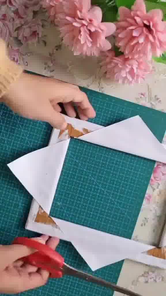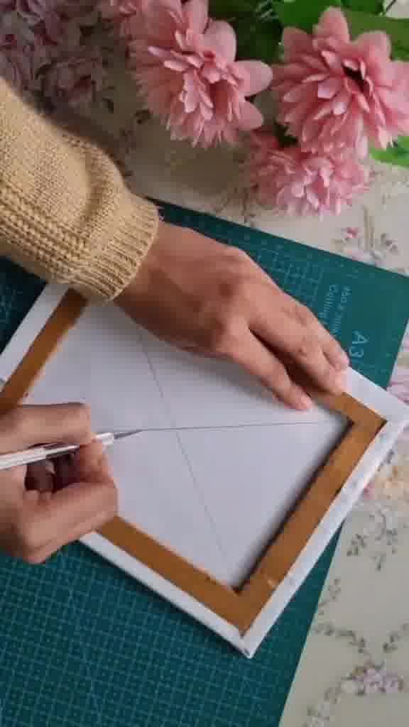 Use your craft knife to carefully cut diagonal slits from the inner corners of the frame’s opening to the outer corners.