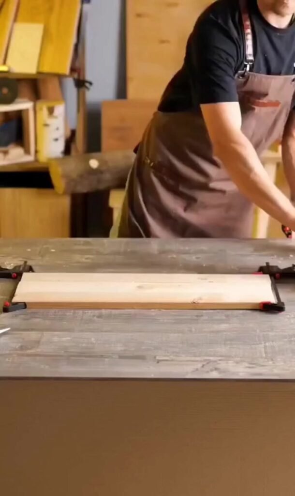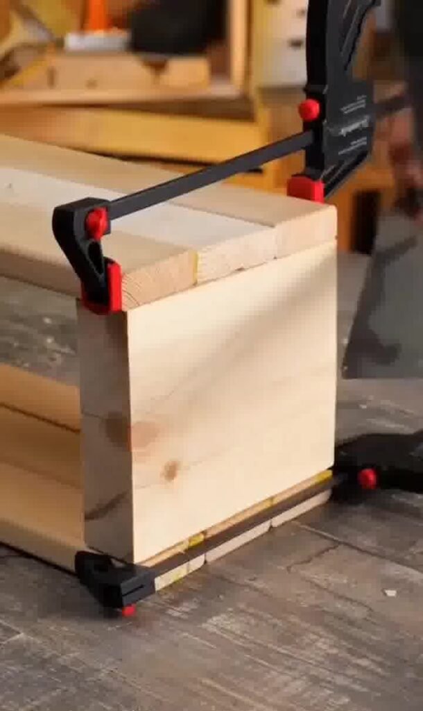 Using clamps, secure the wall bracket board and the two smaller side supports to a workbench.