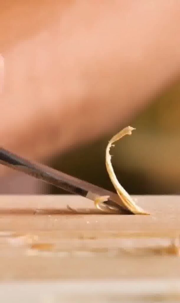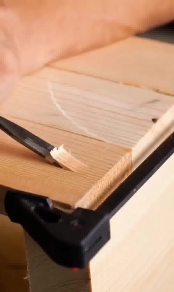 Using a chisel, carefully carve out the half-circle you just drew on the side supports.