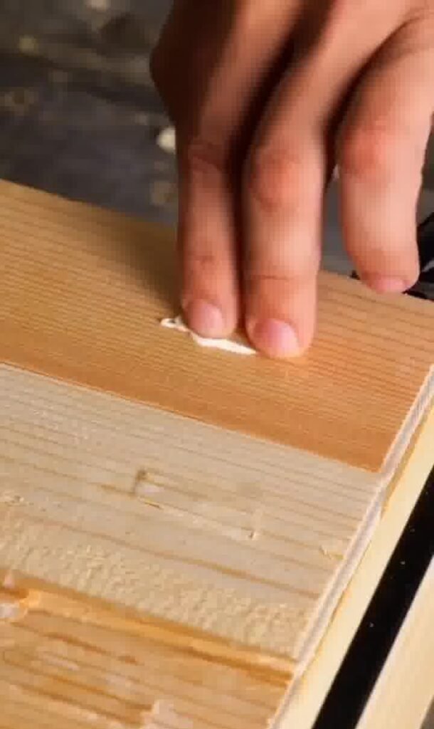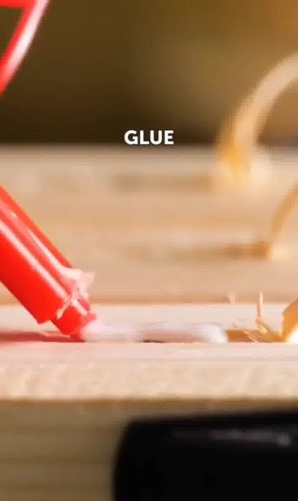 The video shows adding a nail for extra security after the glue is applied. You can also use wood screws for this. Wipe away any excess glue and let it dry.