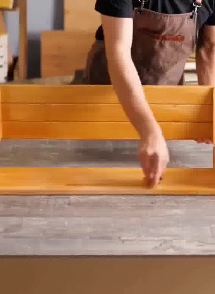 First, you’ll need two main wooden boards. The video shows the main board being used as the drop-down table surface. The other is for the wall bracket.