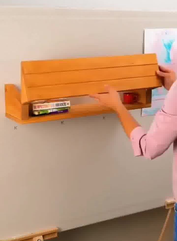 Finally, mount the completed drop-down table to your wall using sturdy wall brackets.